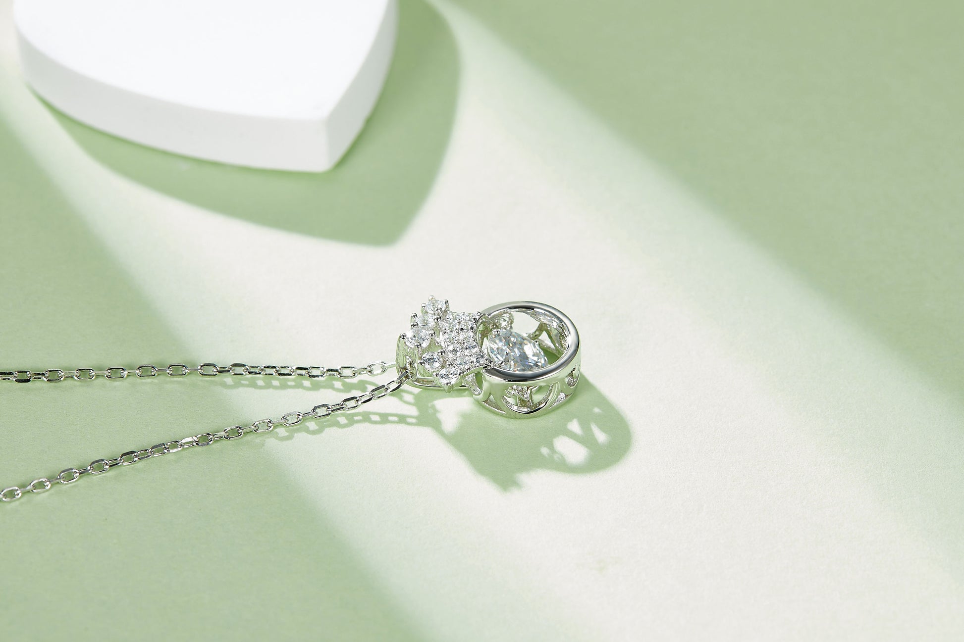 Add a royal sparkle to your collection with the Crown Solitaire Moissanite Necklace—a brilliant 0.5ct center stone in platinum-plated S925 sterling silver.