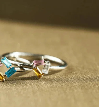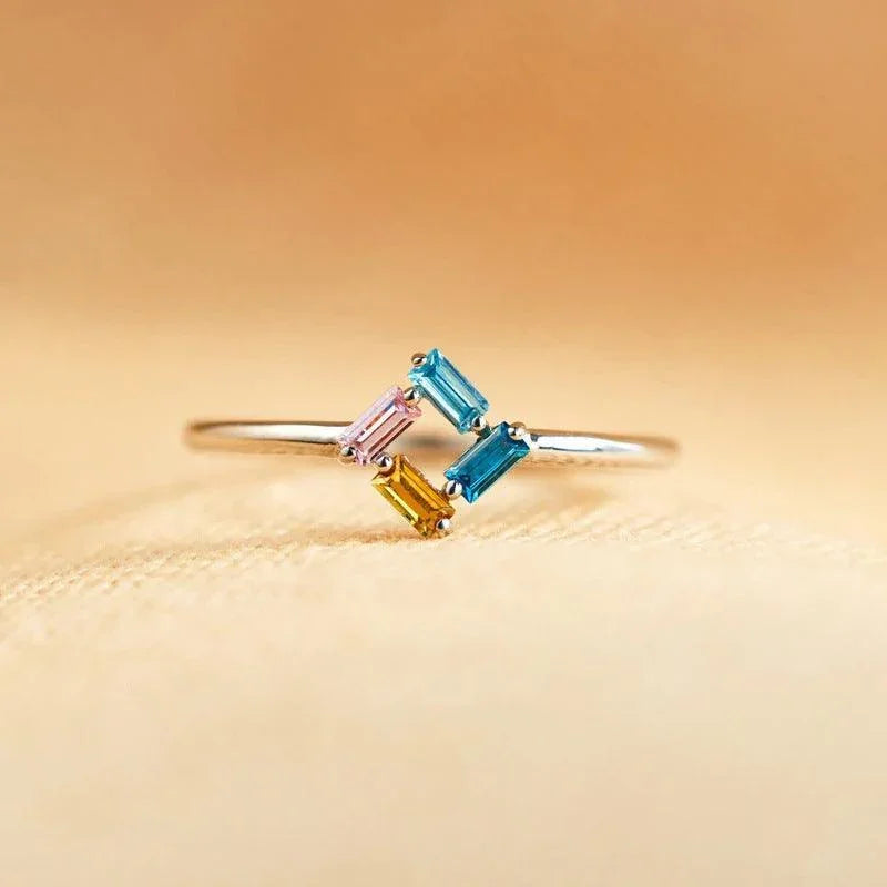 925 Birthstone Simple Diamond personalized Ring