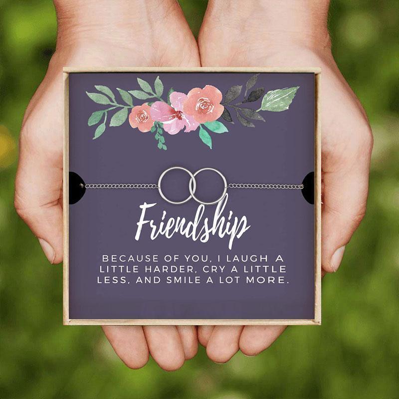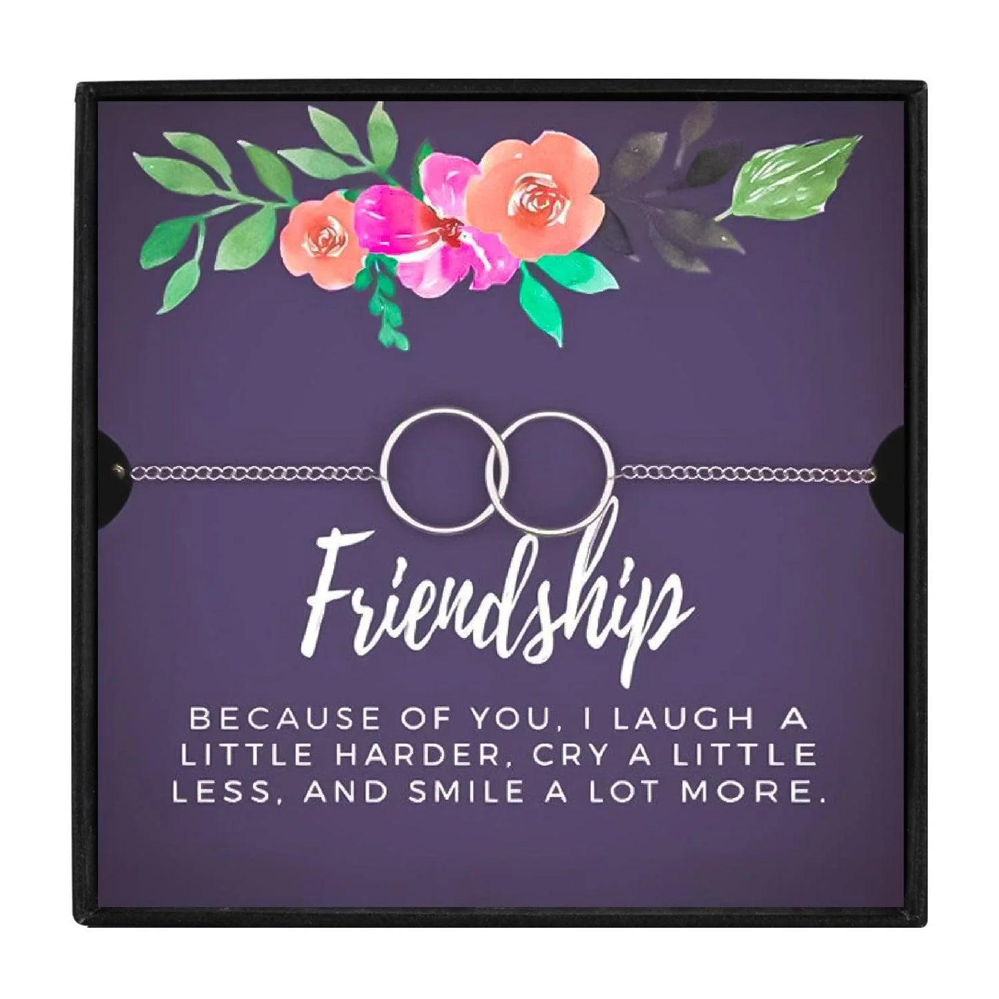 Friendship for Eternity Bracelets makes a perfect gift for great best friends, sisters, reunions, or bridesmaids, to celebrate your eternal bond of friendship. Comes beautifully wrapped and ready forgiving. Going Away Present, College, Besties. Perfect for birthday Present!