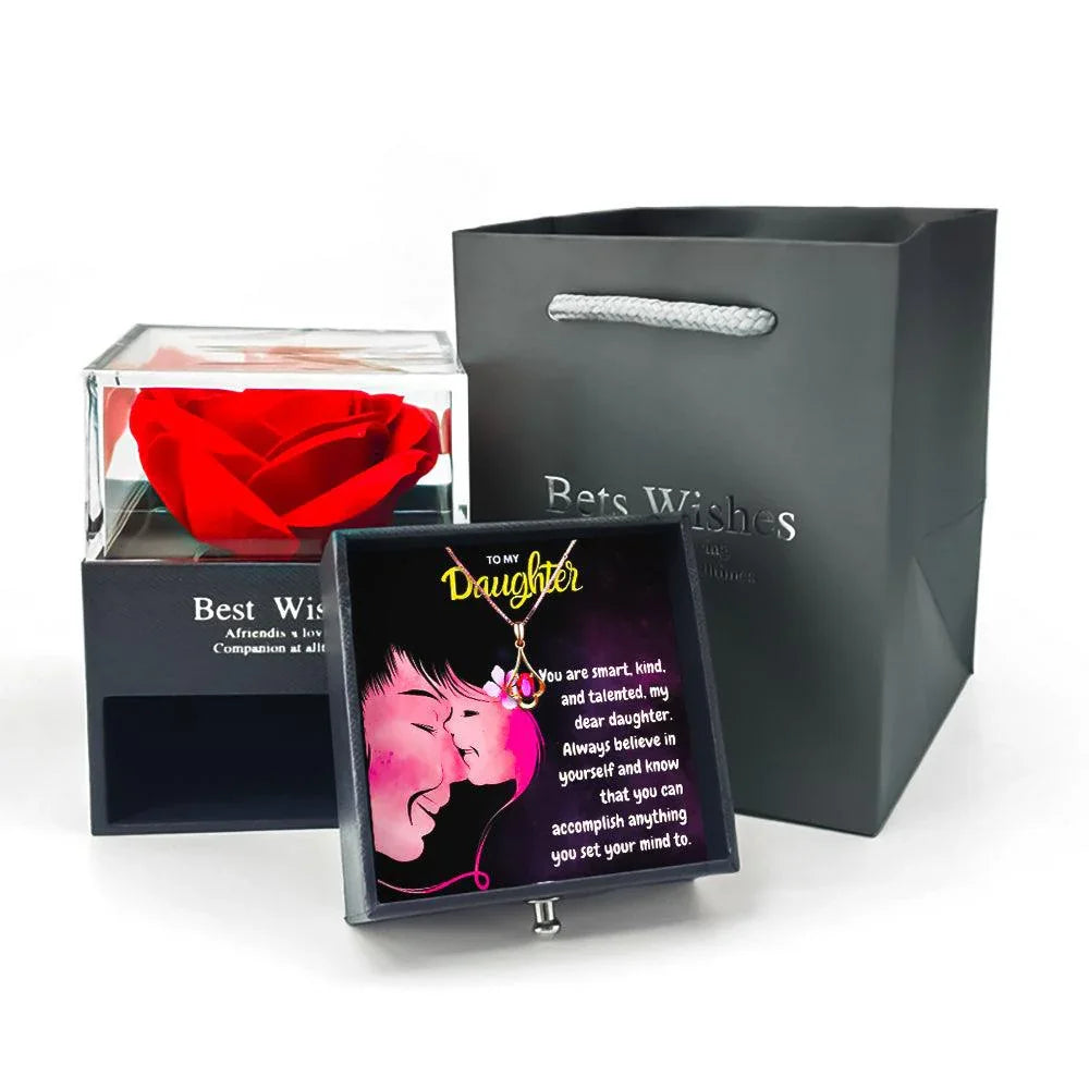 Gifts for Daughter With Message Card With Rose Flower Jewelry Box