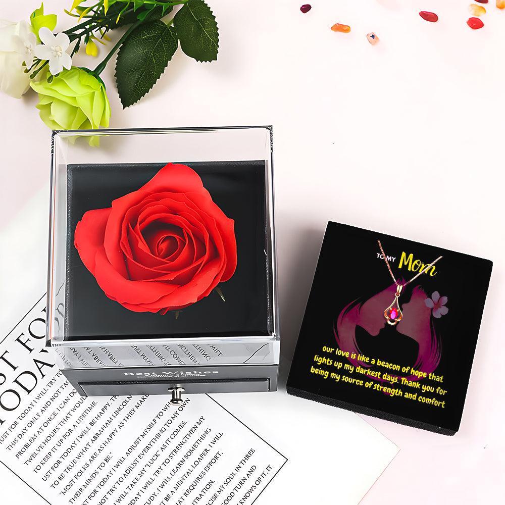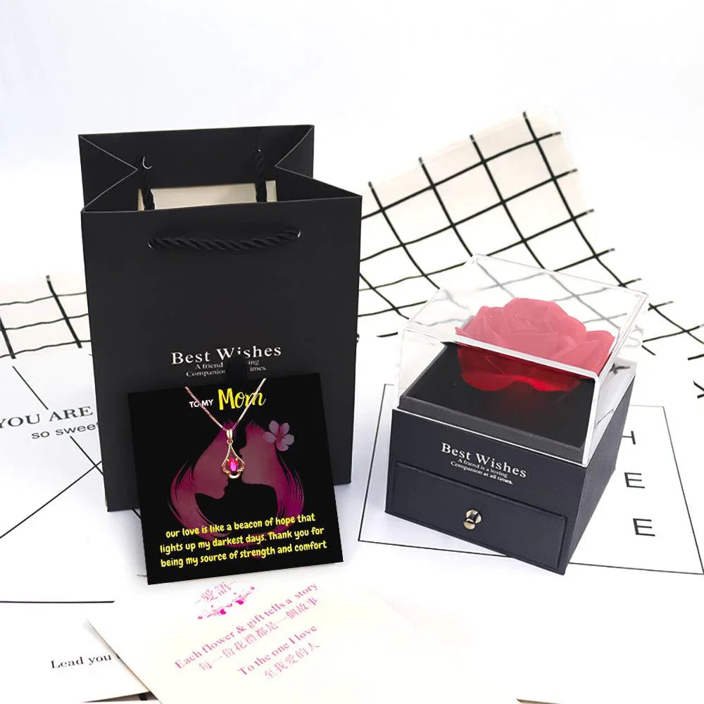 Introducing the exquisite To My Mom Necklace With Rose Flower Jewelry Box - a heartfelt tribute to the most important woman in your life. This stunning jewelry set combines a beautifully crafted necklace and a matching rose flower jewelry box, creating a truly unforgettable gift for your beloved mom.