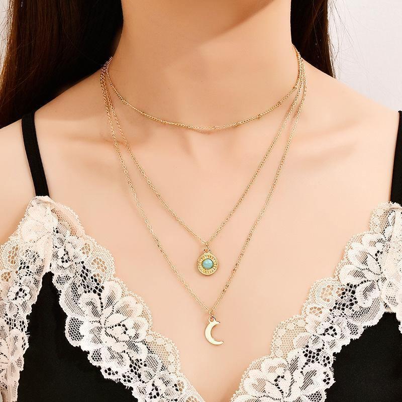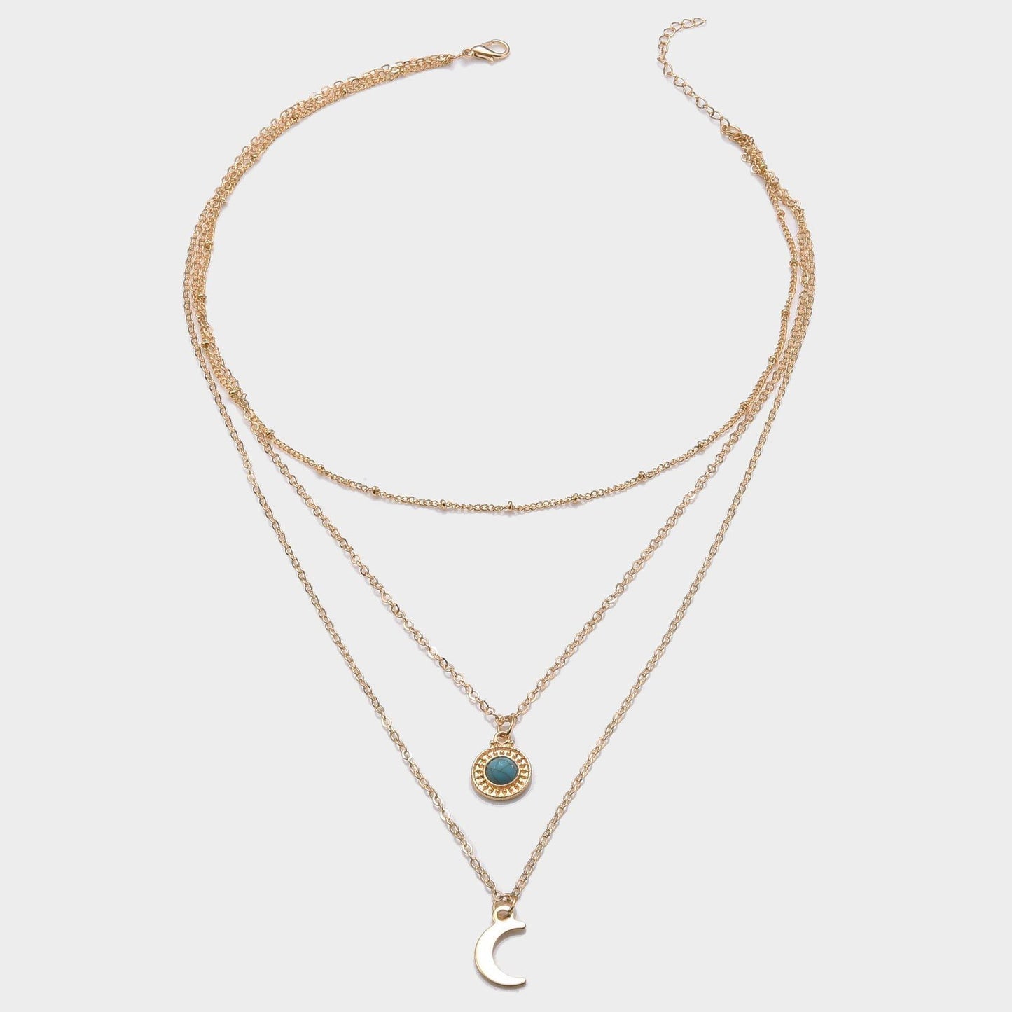 Turquoise Multilayer Female Metal Moon Pendant Necklace