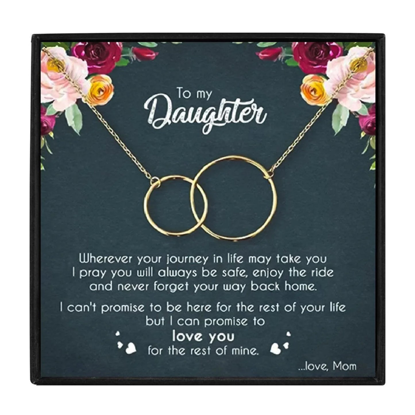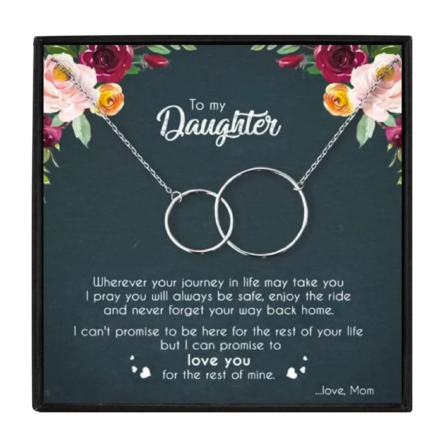For anyone who has a little piece of their heart belonging to someone else. Honor the infinite bond between mother and daughter and let her know she's always connected to you, just like these interlocking circles. When she wears this necklace, she'll have a reminder of her strength and that you are always there for her. Great for best friends, sisters, wife, grandmother, daughter, granddaughter, women, and girls.